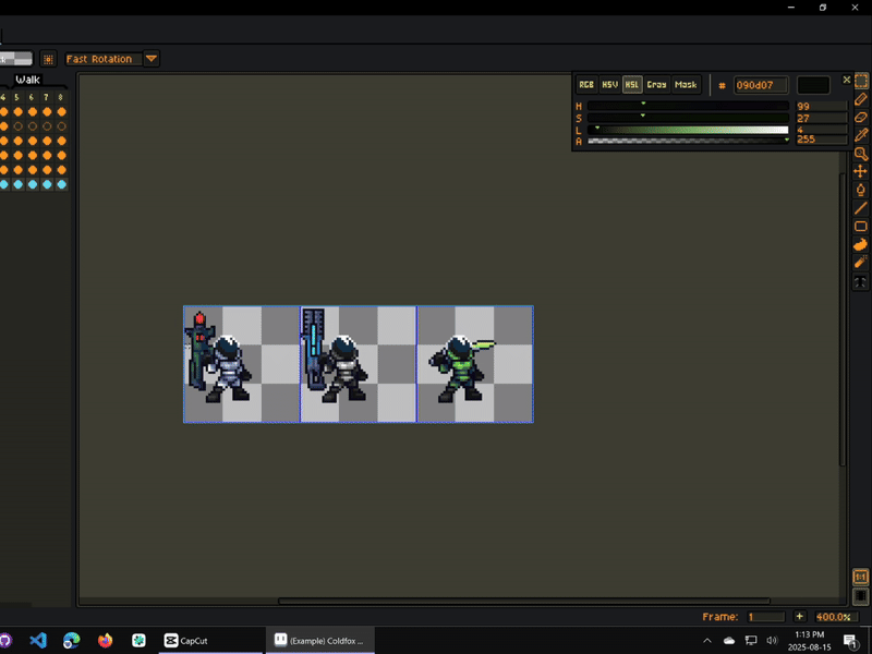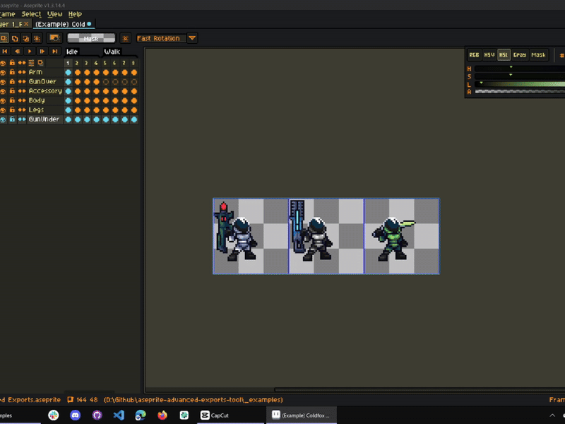 Designing interfaces or icons in Aseprite? Export each slice as its own file with custom naming schemes. Ideal for buttons, menus, or game UI, this feature keeps everything structured and game-ready.