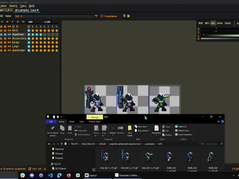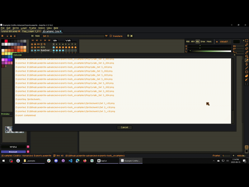 Stop wasting time exporting frame by frame. With just one click, you can batch export your Aseprite animation tags into GIFs, PNG sequences, or full spritesheets. Perfect for game engines, trailers, or sharing your art online, this feature turns your pixel animations into polished, ready-to-use assets in seconds.